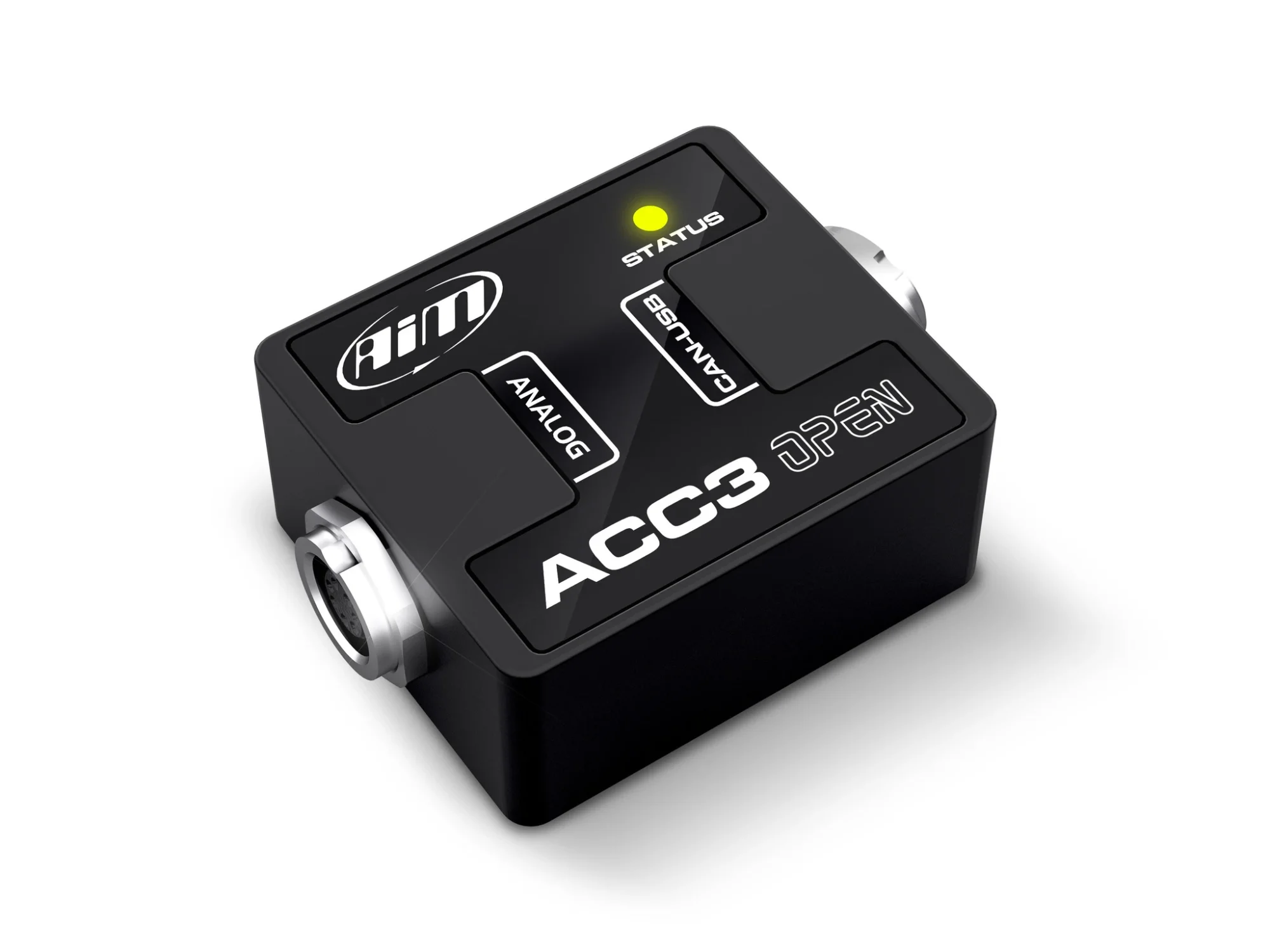 AiM ACC3 Open to kompaktowy konwerter analogowo-CAN do rozbudowy systemów pomiarowych AiM oraz integracji z urządzeniami zewnętrznymi przez magistralę CAN. Urządzenie zostało stworzone do zastosowań motorsportowych i testowych, gdzie liczy się szybki odczyt sygnałów, stabilna transmisja danych oraz elastyczność konfiguracji.