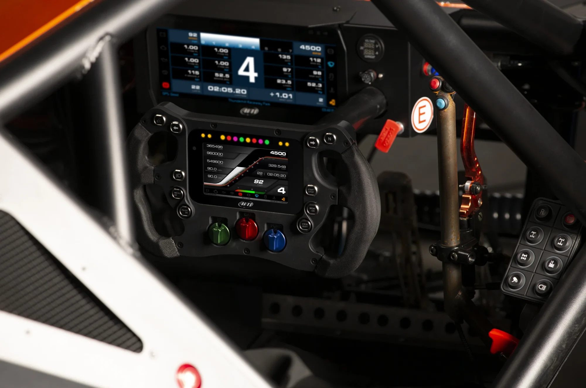 Obudowa wykonana z anodowanego aluminium oraz klasa szczelności IP65 sprawiają, że kierownica dobrze sprawdza się w wymagających warunkach eksploatacji. Opcjonalnie system może zostać rozbudowany o łopatki zmiany biegów oraz łopatki sprzęgła, zależnie od wymagań konkretnego samochodu i kierowcy.
