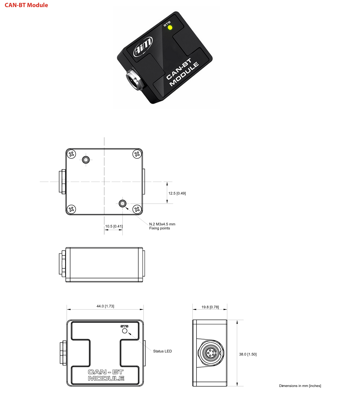 CAN-BT Module (kod producenta X08CANBTM00) to kompaktowy moduł Bluetooth/CAN, który umożliwia bezprzewodowy podgląd i podstawową konfigurację sterowników AiM Taipan oraz AiM Yarara z poziomu smartfona, za pomocą aplikacji SPARK na Android i iOS.