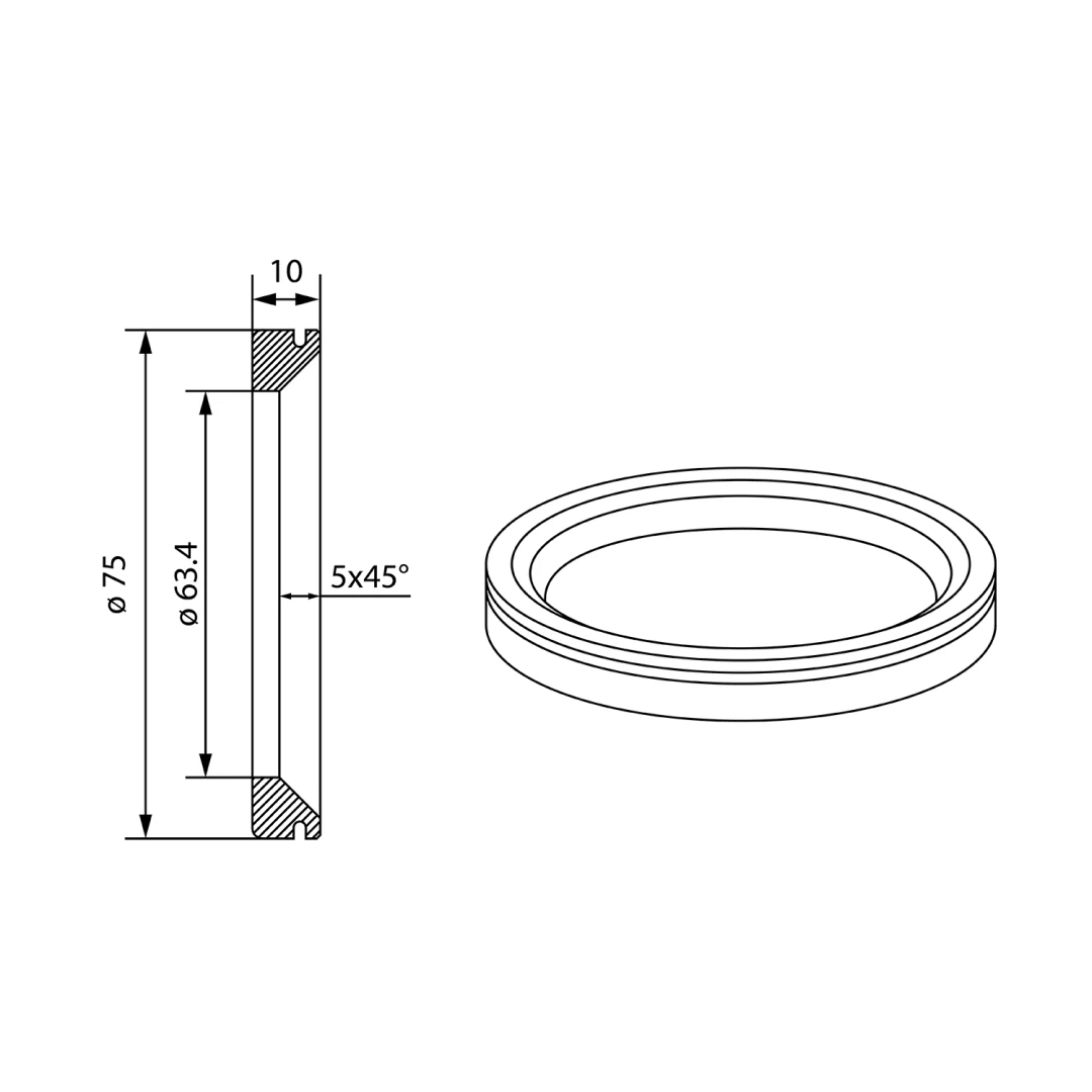 Aluminiowy pierścień centrujący przeznaczony do felg Evo Corse, zmieniający średnicę otworu centrującego z 75 mm na 63.4 mm.