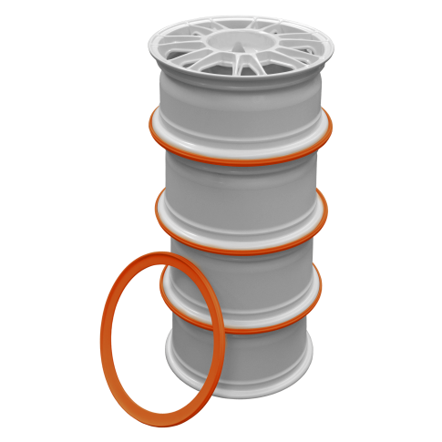 Polietylenowy pierścień do składowania felg w magazynie, garażu lub padoku. Umieszczony pomiędzy felgami chroni krawędź obręczy i zapobiega ruchom felg dzięki zewnętrznej krawędzi. Można go stosować również do felg z oponami.