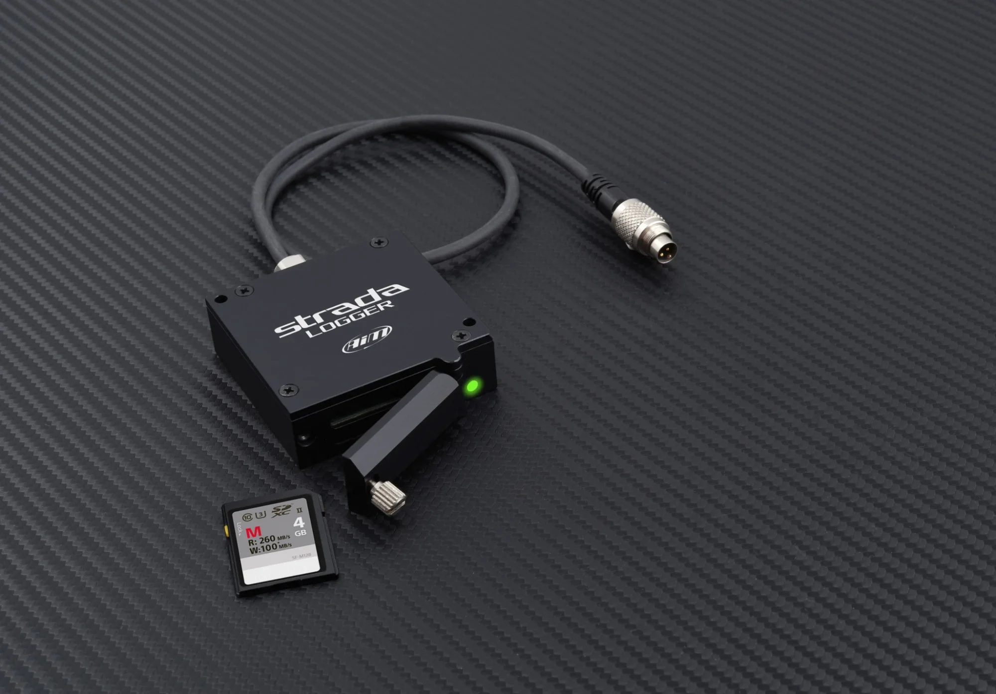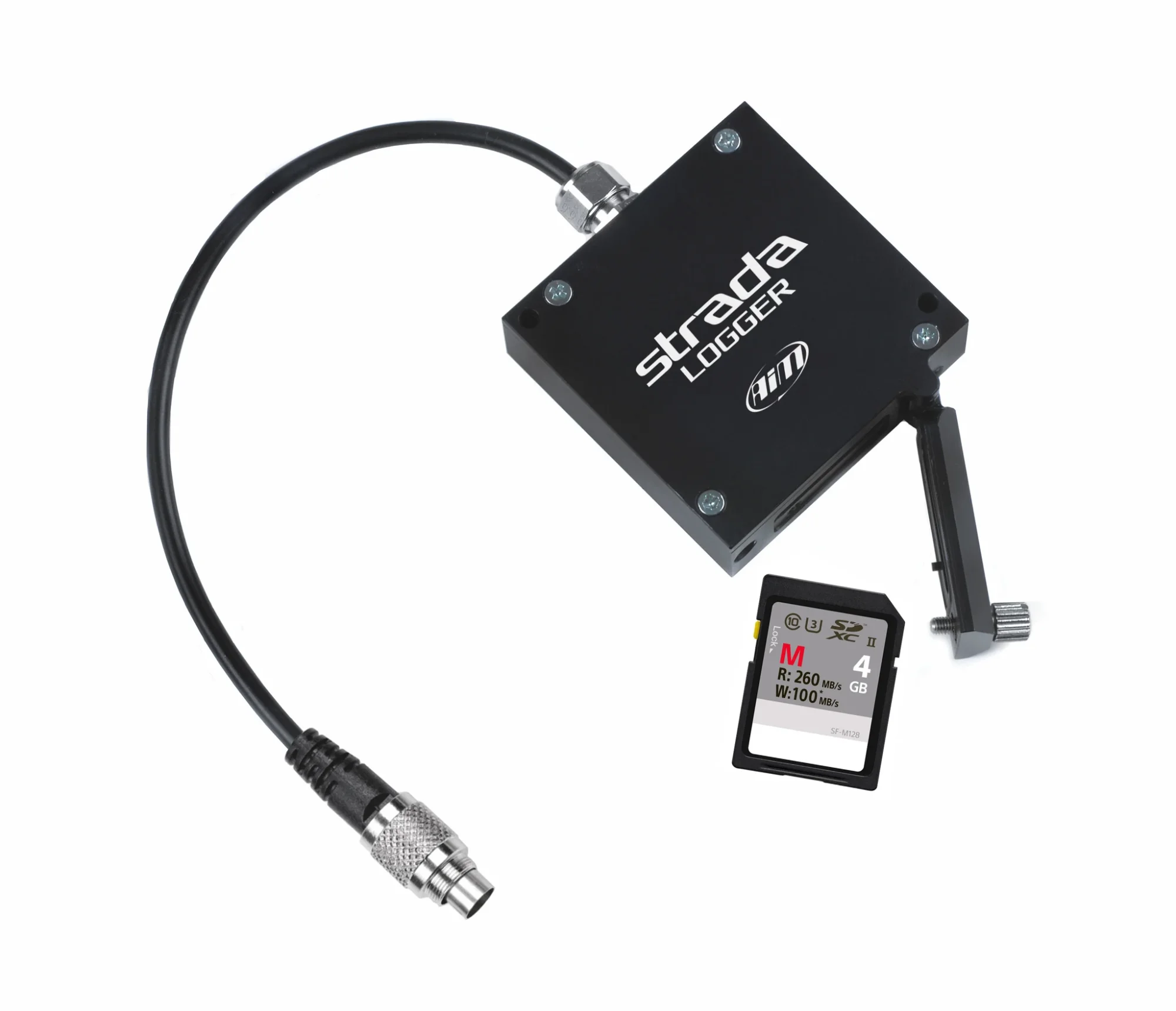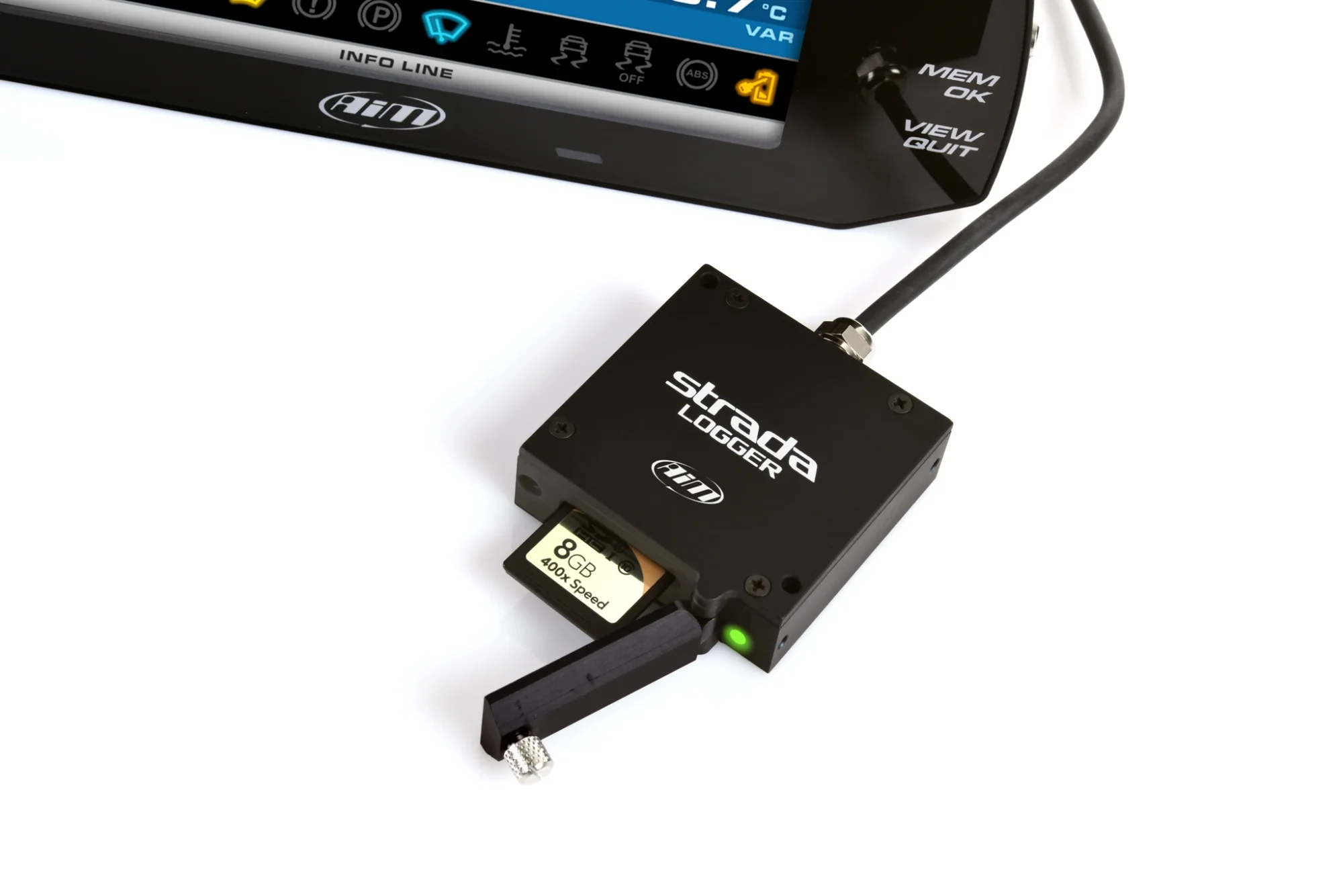 AiM Strada Logger to kompaktowy moduł pamięci / loggera, który rozszerza możliwości wyświetlaczy AiM Strada o funkcje rejestracji danych (czyli praktycznie „upgrade” ze Strada w kierunku funkcjonalności Pista). Producent wskazuje go jako moduł do dashy z serii Strada, m.in. MXS 1.3 Strada, MXP 1.3 Strada, MXG 1.3 Strada i MXT 1.3 Strada.