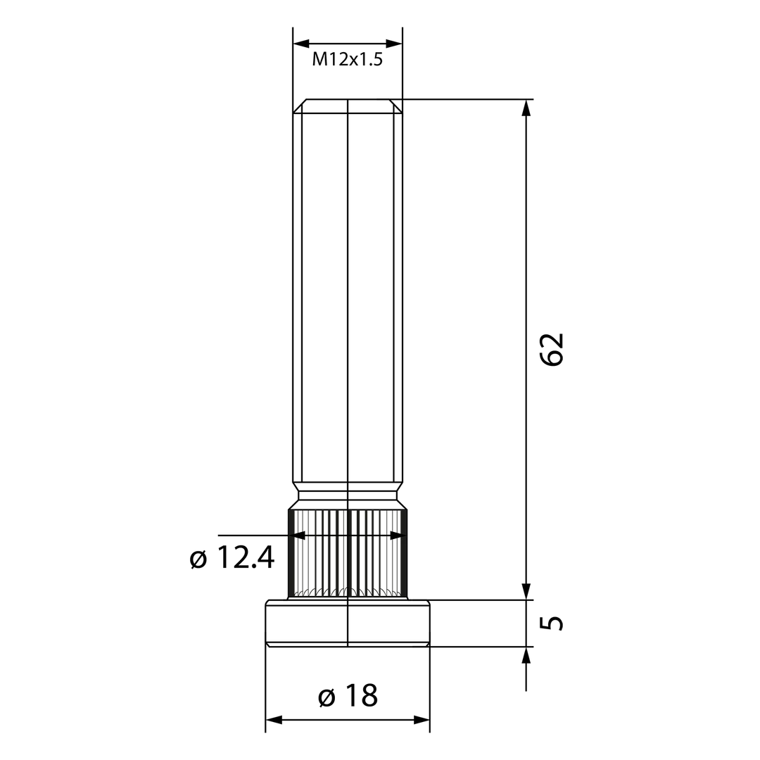 Szpilka radełkowana M12x1,5, długość 62mm, rad 12,4