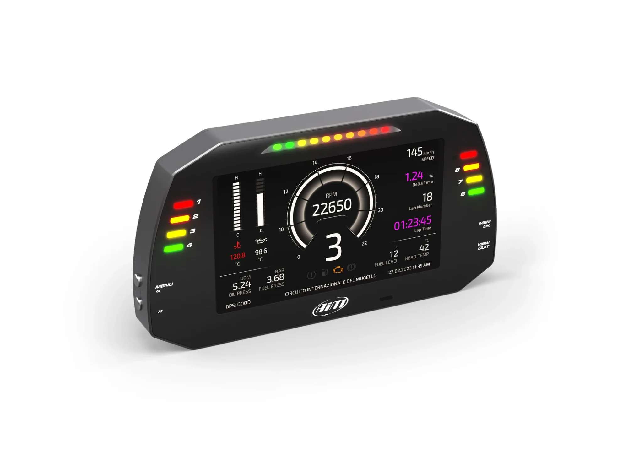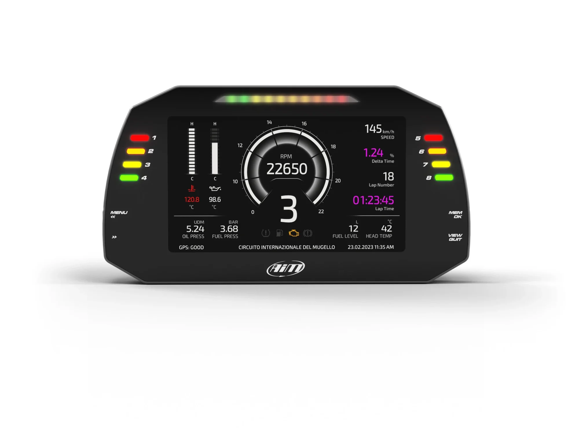 Alarmy i ostrzeżenia „na diodach”: 8× RGB alarm LEDs + 10× RGB shift lights (w pełni konfigurowalne).