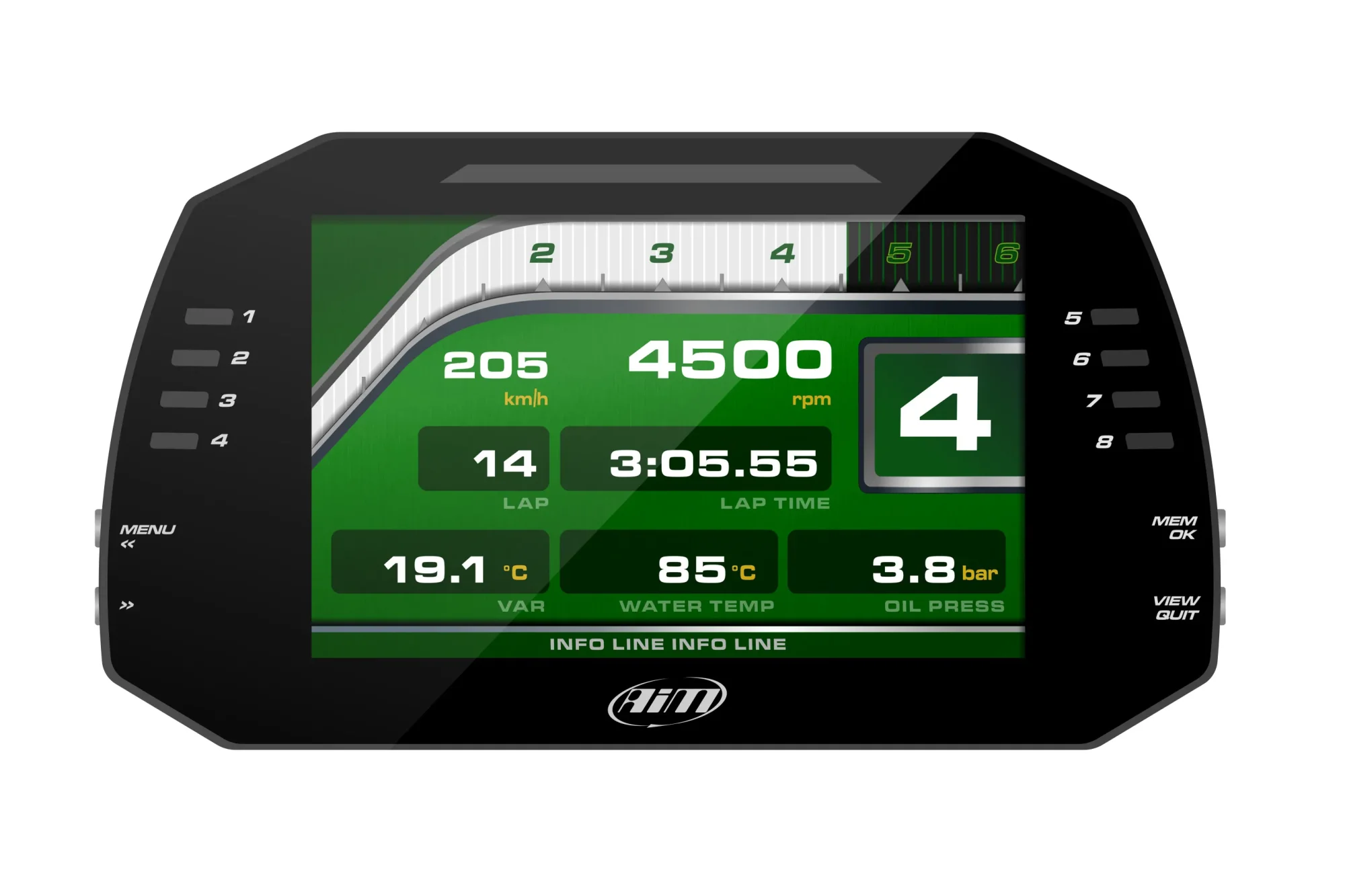 Wszystkie dane w jednym miejscu MXG 1.3 wyświetla dane z ECU lub czujników na prekonfigurowanych stronach. Informacje takie jak obroty silnika, prędkość, ciśnienie oleju, temperatura wody oraz czasy okrążeń prezentowane są w przejrzysty sposób na wysokiej jakości 7-calowym wyświetlaczu TFT o rozdzielczości 800x480 pikseli. Dzięki wbudowanej pamięci 4GB, dane te mogą być rejestrowane i analizowane w dołączonym oprogramowaniu Race Studio 3.