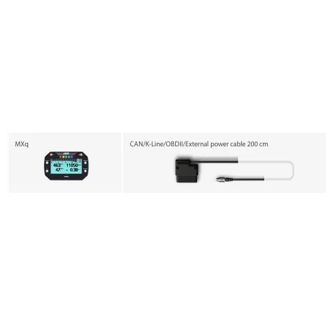 Numer zestawu: XMXQOBD200 • Zawartość: MXq + przewód CAN/K-Line z zasilaniem zewnętrznym i złączem OBDII, długość 2 m |