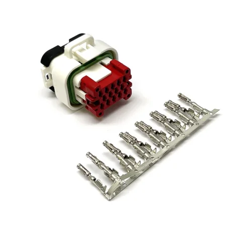 14-pin replacement connector + contacts for the MX 1.3 Strada Series 5CND7762732C jest właściwym wyborem zarówno do serwisu, jak i przy kompletowaniu elementów instalacyjnych do wyświetlaczy AiM.